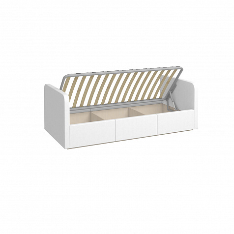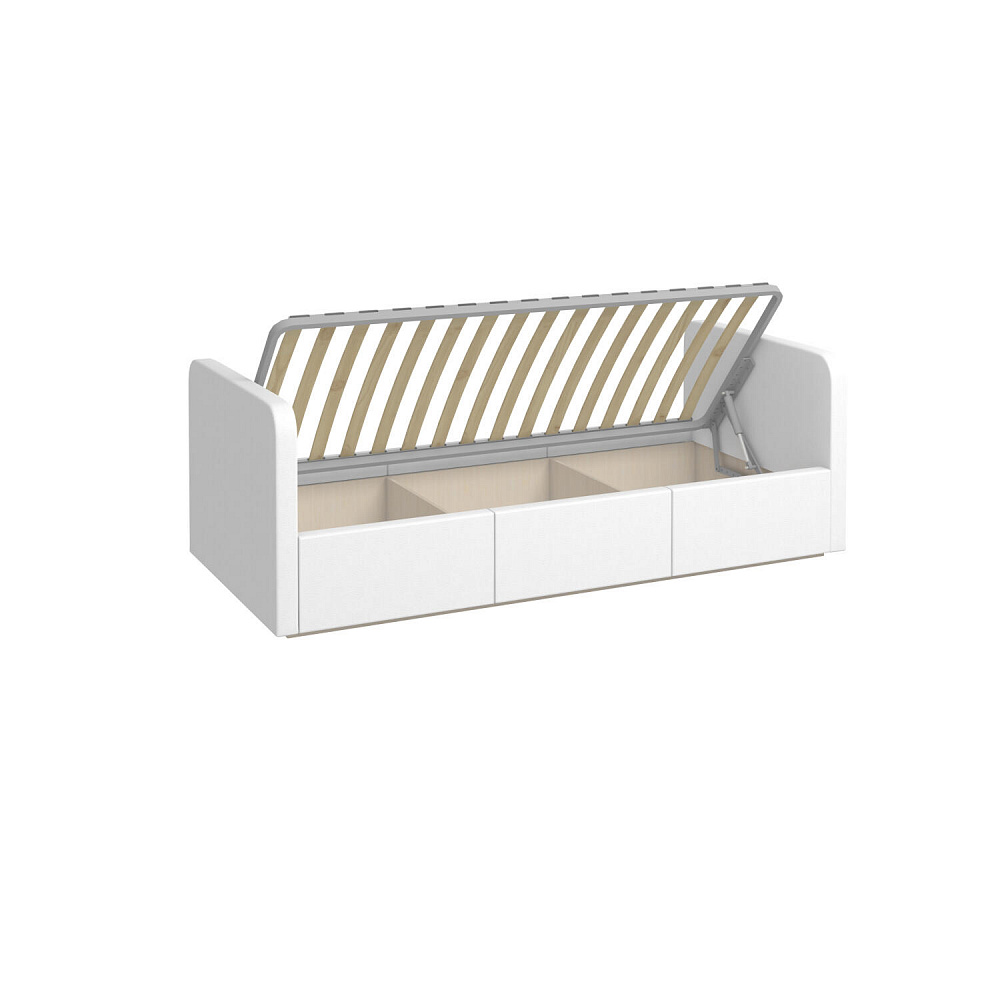 - Отделение для хранения. Под ортопедическим основанием есть разделенная на три части вместительная ниша для постельных принадлежностей, пледов или игрушек.