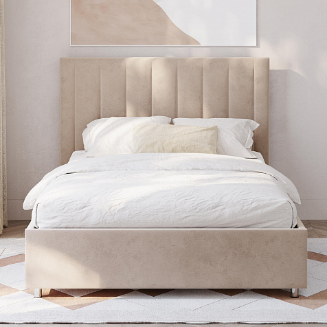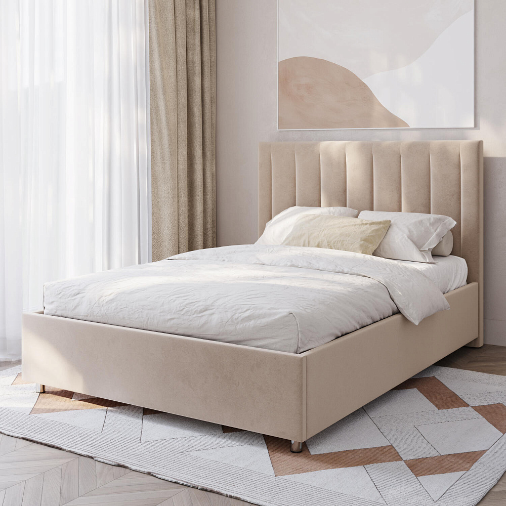 Мягкая кровать «Альфа» будет смотреться в интерьере спальни стильно и лаконично. Высокое изголовье модели украшено вертикальными строчками. Ортопедическое основание и правильно подобранный матрас обеспечат комфортный отдых и здоровый сон.