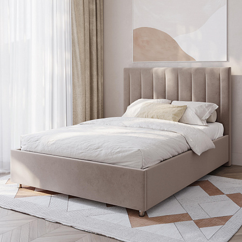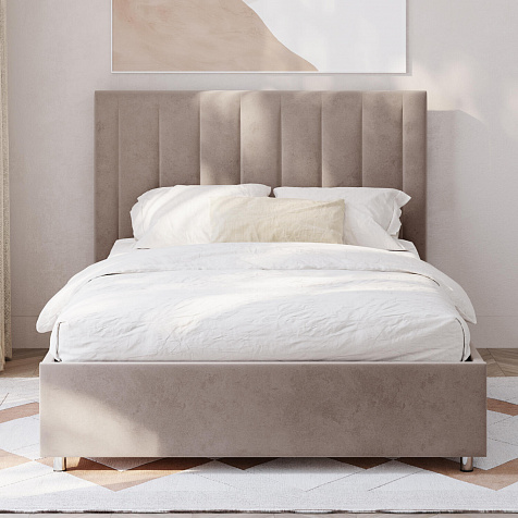 Мягкая кровать «Альфа» будет смотреться в интерьере спальни стильно и лаконично. Высокое изголовье модели украшено вертикальными строчками. Ортопедическое основание и правильно подобранный матрас обеспечат комфортный отдых и здоровый сон.