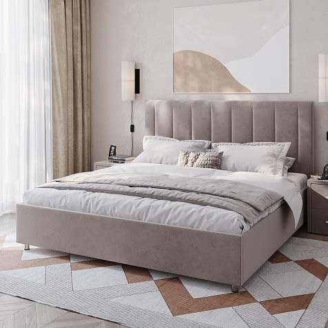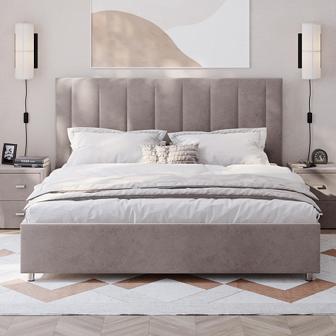Мягкая кровать «Альфа» будет смотреться в интерьере спальни стильно и лаконично. Высокое изголовье модели украшено вертикальными строчками. Ортопедическое основание и правильно подобранный матрас обеспечат комфортный отдых и здоровый сон.