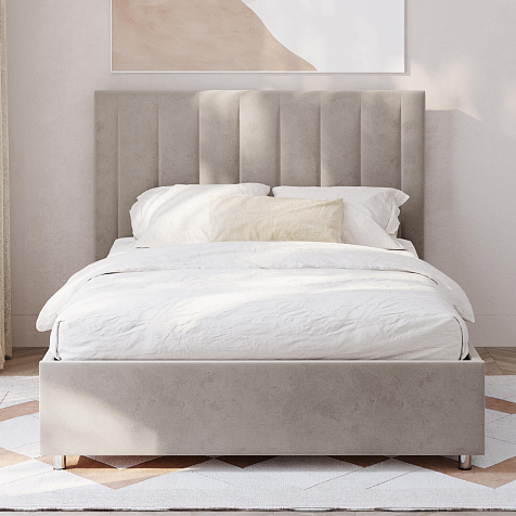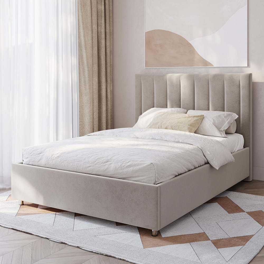 Мягкая кровать «Альфа» будет смотреться в интерьере спальни стильно и лаконично. Высокое изголовье модели украшено вертикальными строчками. Ортопедическое основание и правильно подобранный матрас обеспечат комфортный отдых и здоровый сон.