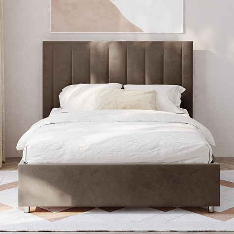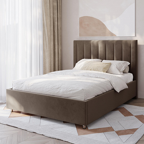 Мягкая кровать «Альфа» будет смотреться в интерьере спальни стильно и лаконично. Высокое изголовье модели украшено вертикальными строчками. Ортопедическое основание и правильно подобранный матрас обеспечат комфортный отдых и здоровый сон.