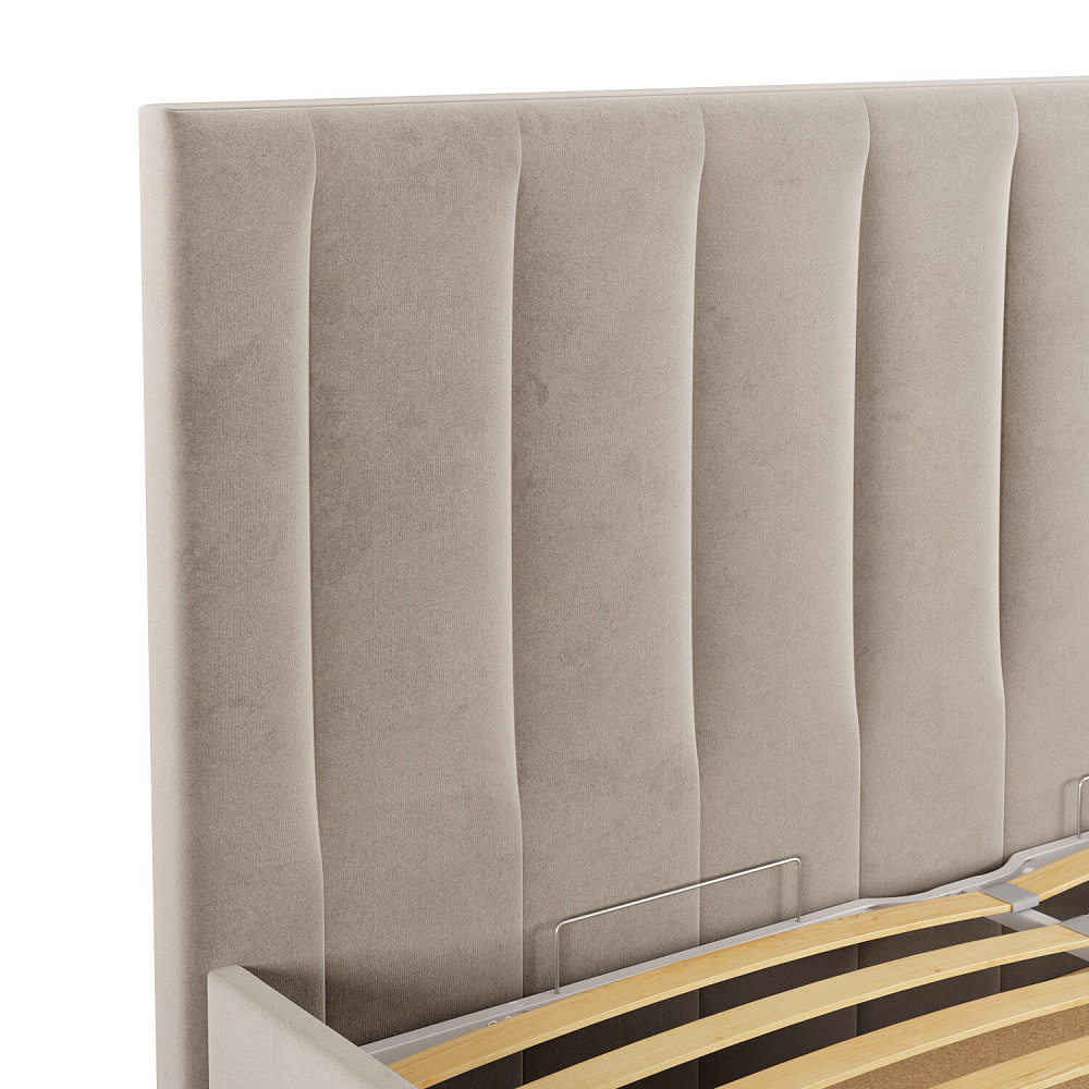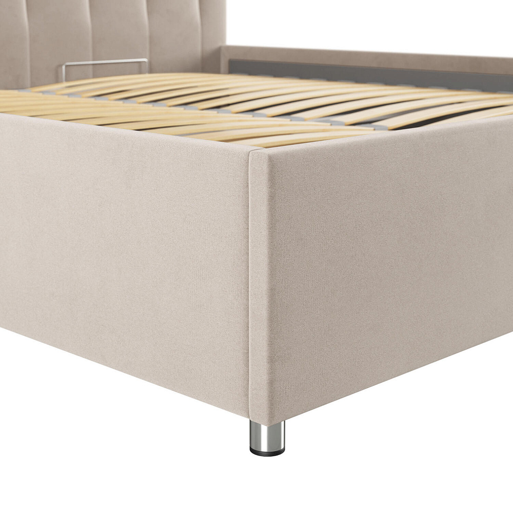 Подъёмный механизм поднимает и опускает основание кровати вместе с матрасом, открывая доступ к пространству для хранения вещей.