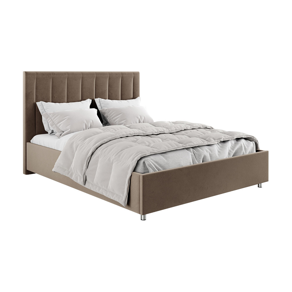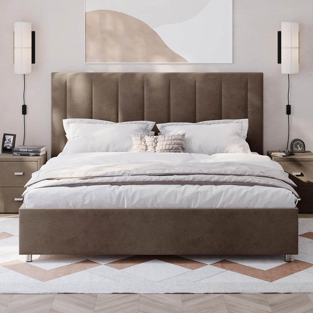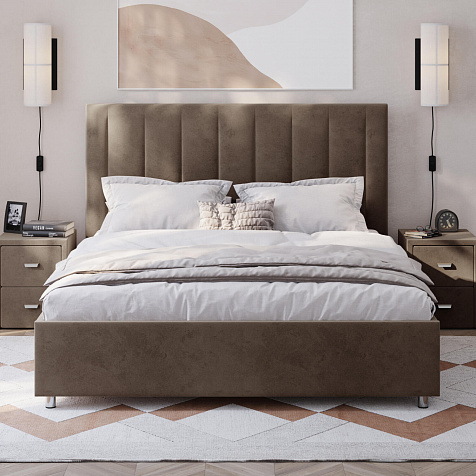 Мягкая кровать «Альфа» будет смотреться в интерьере спальни стильно и лаконично. Высокое изголовье модели украшено вертикальными строчками. Ортопедическое основание и правильно подобранный матрас обеспечат комфортный отдых и здоровый сон.