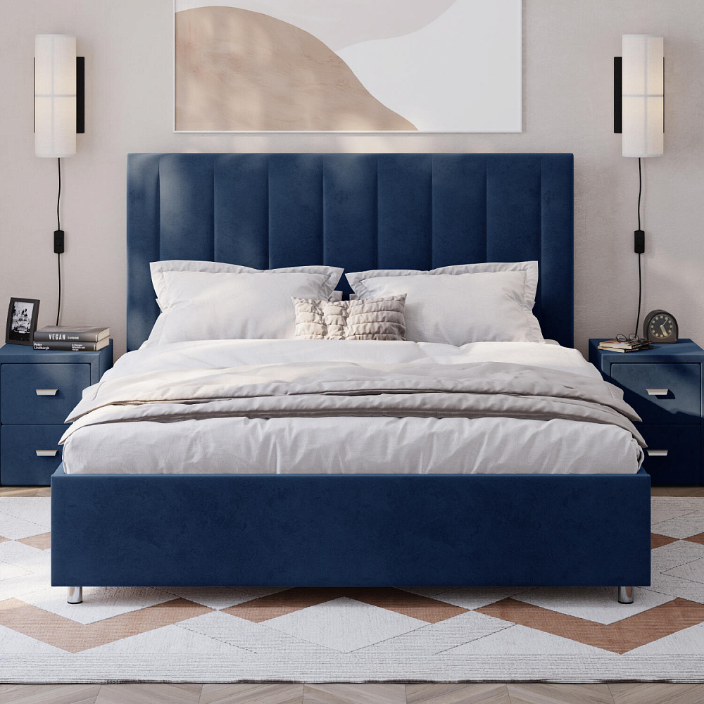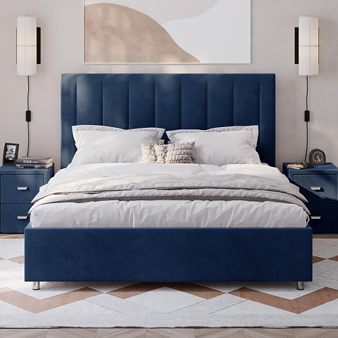 Мягкая кровать «Альфа» будет смотреться в интерьере спальни стильно и лаконично. Высокое изголовье модели украшено вертикальными строчками. Ортопедическое основание и правильно подобранный матрас обеспечат комфортный отдых и здоровый сон.