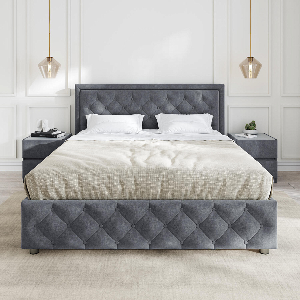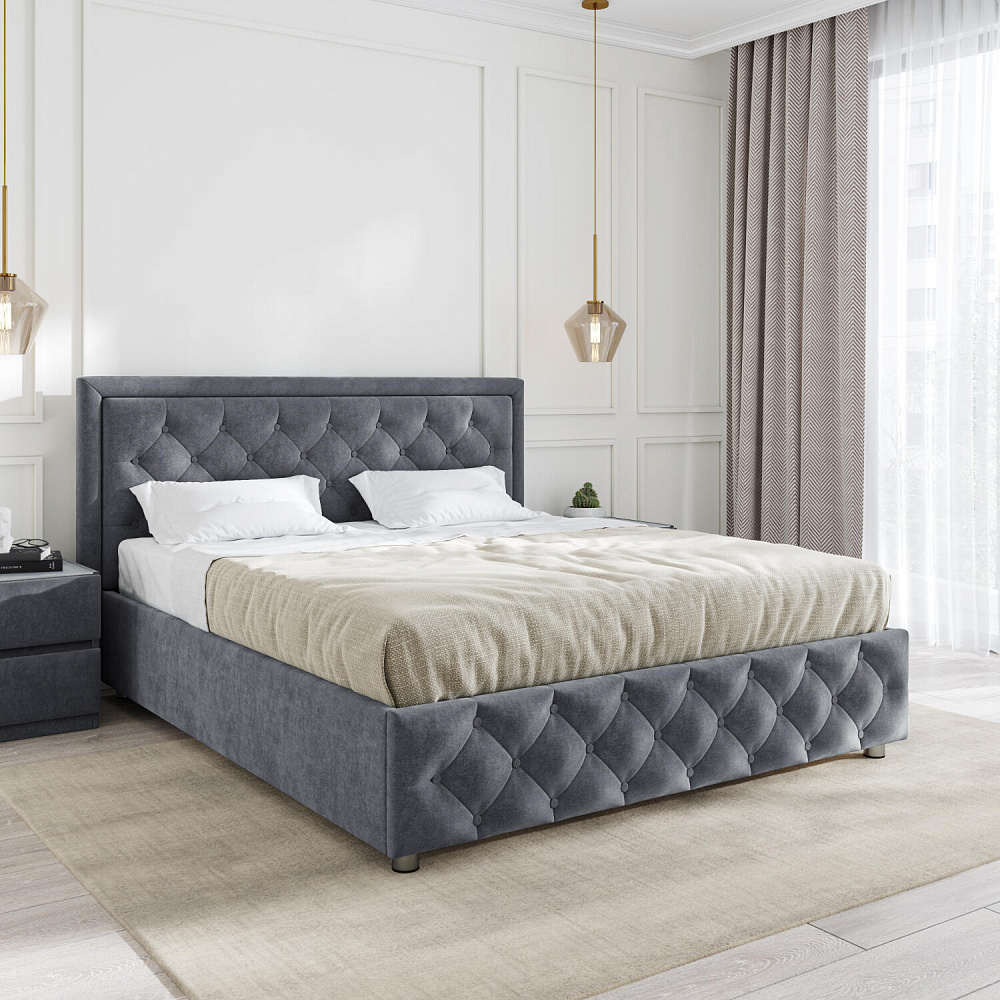 Мягкая кровать «Габриэла» с запоминающимся рельефным декором преобразит интерьер спальни. В модели гармонично сочетаются классический стиль и современные материалы. Помимо широкого спального места кровать оснащена бельевым ящиком, что поможет освободить пространство спальни для новых вещей.