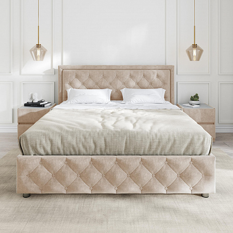 Мягкая кровать «Габриэла» с запоминающимся рельефным декором преобразит интерьер спальни. В модели гармонично сочетаются классический стиль и современные материалы. Помимо широкого спального места кровать оснащена бельевым ящиком, что поможет освободить пространство спальни для новых вещей.