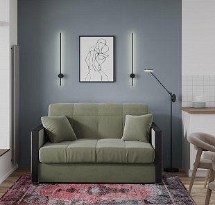 Обивка из велюра. Мягкая ткань отличается лёгким меланжевым эффектом — состоит из едва заметных «крупинок» разных оттенков, которые хочется рассматривать и изучать. Для ухода используйте сухую чистку или профессиональную химчистку, не используйте абразивные средства.