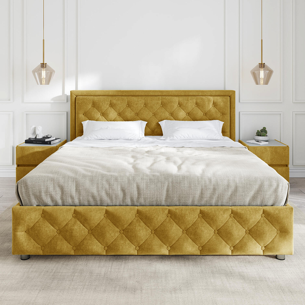 Мягкая кровать «Габриэла» с запоминающимся рельефным декором преобразит интерьер спальни. В модели гармонично сочетаются классический стиль и современные материалы. Помимо широкого спального места кровать оснащена бельевым ящиком, что поможет освободить пространство спальни для новых вещей.