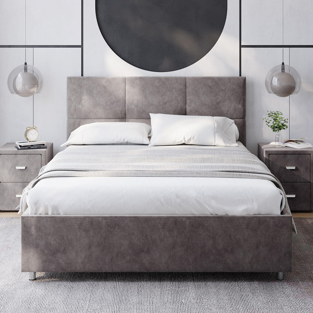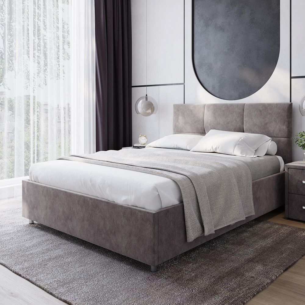 Кровать «Альба» — гармоничное сочетание стильного дизайна и комфорта. Мягкое изголовье с декором в виде прямоугольной строчки выглядит эффектно и создаёт ощущение уюта. Модель также поможет сэкономить пространство спальни благодаря вместительному бельевому коробу под решёткой.