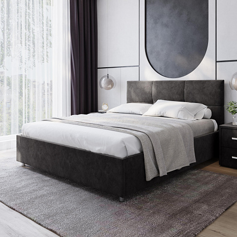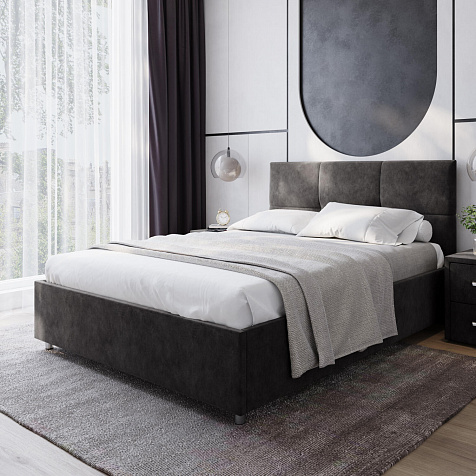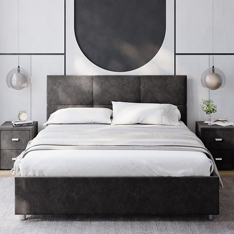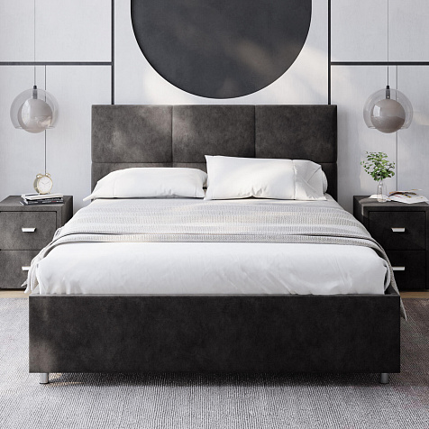 Кровать «Альба» — гармоничное сочетание стильного дизайна и комфорта. Мягкое изголовье с декором в виде прямоугольной строчки выглядит эффектно и создаёт ощущение уюта. Модель также поможет сэкономить пространство спальни благодаря вместительному бельевому коробу под решёткой.