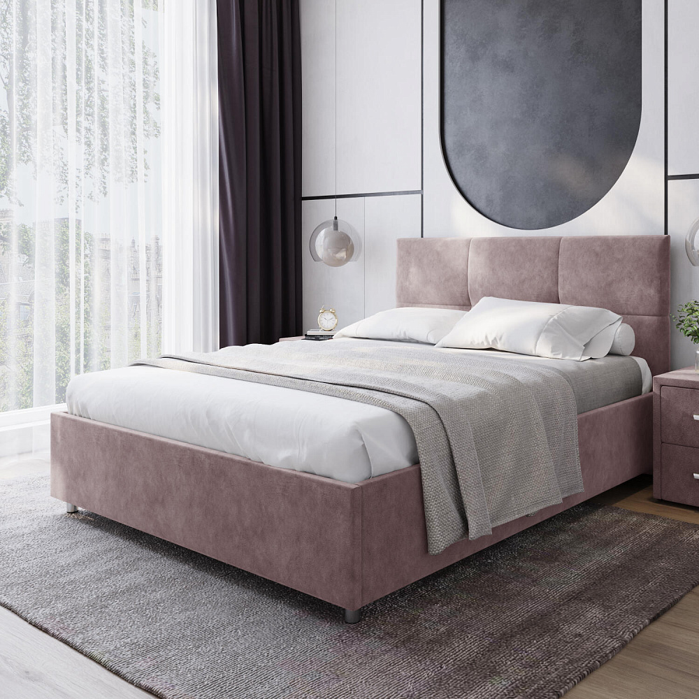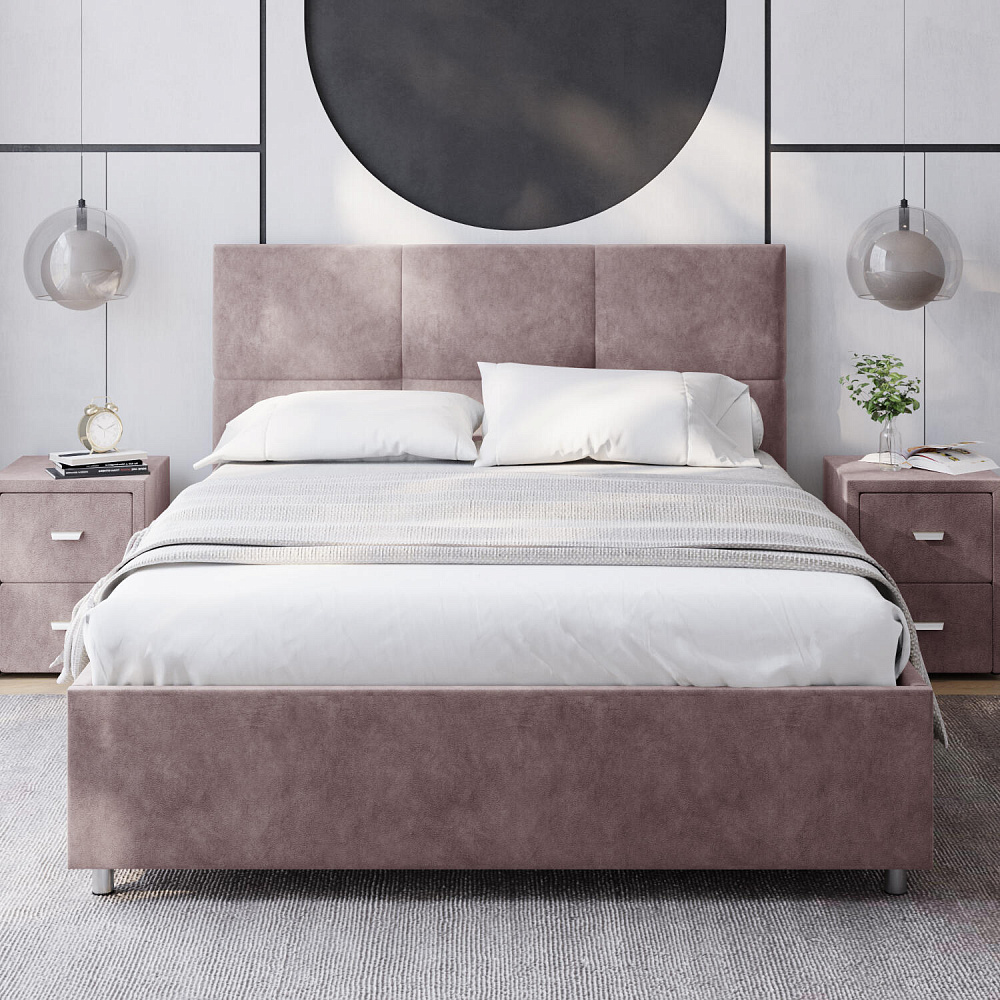 Кровать «Альба» — гармоничное сочетание стильного дизайна и комфорта. Мягкое изголовье с декором в виде прямоугольной строчки выглядит эффектно и создаёт ощущение уюта. Модель также поможет сэкономить пространство спальни благодаря вместительному бельевому коробу под решёткой.