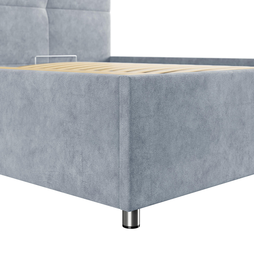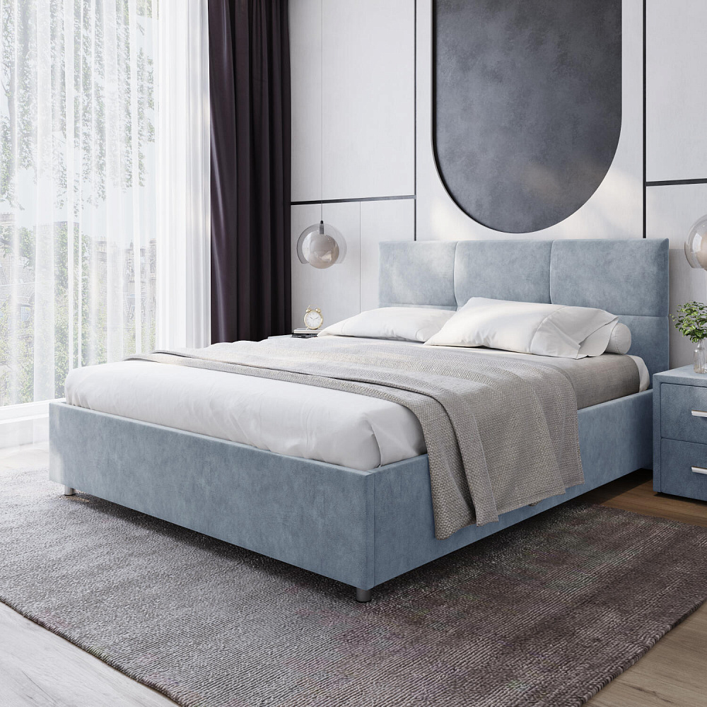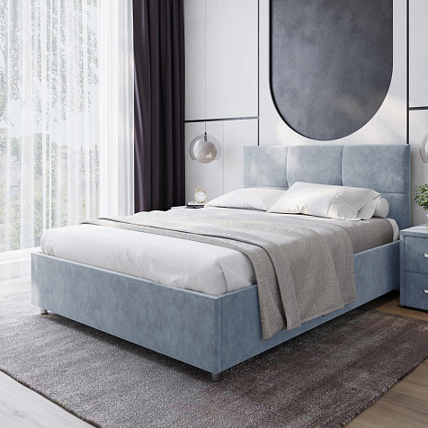 Кровать «Альба» — гармоничное сочетание стильного дизайна и комфорта. Мягкое изголовье с декором в виде прямоугольной строчки выглядит эффектно и создаёт ощущение уюта. Модель также поможет сэкономить пространство спальни благодаря вместительному бельевому коробу под решёткой.
