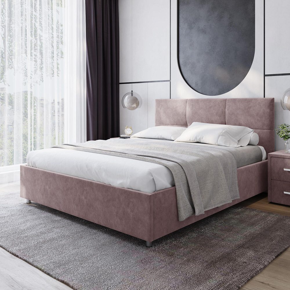 Кровать «Альба» — гармоничное сочетание стильного дизайна и комфорта. Мягкое изголовье с декором в виде прямоугольной строчки выглядит эффектно и создаёт ощущение уюта. Модель также поможет сэкономить пространство спальни благодаря вместительному бельевому коробу под решёткой.
