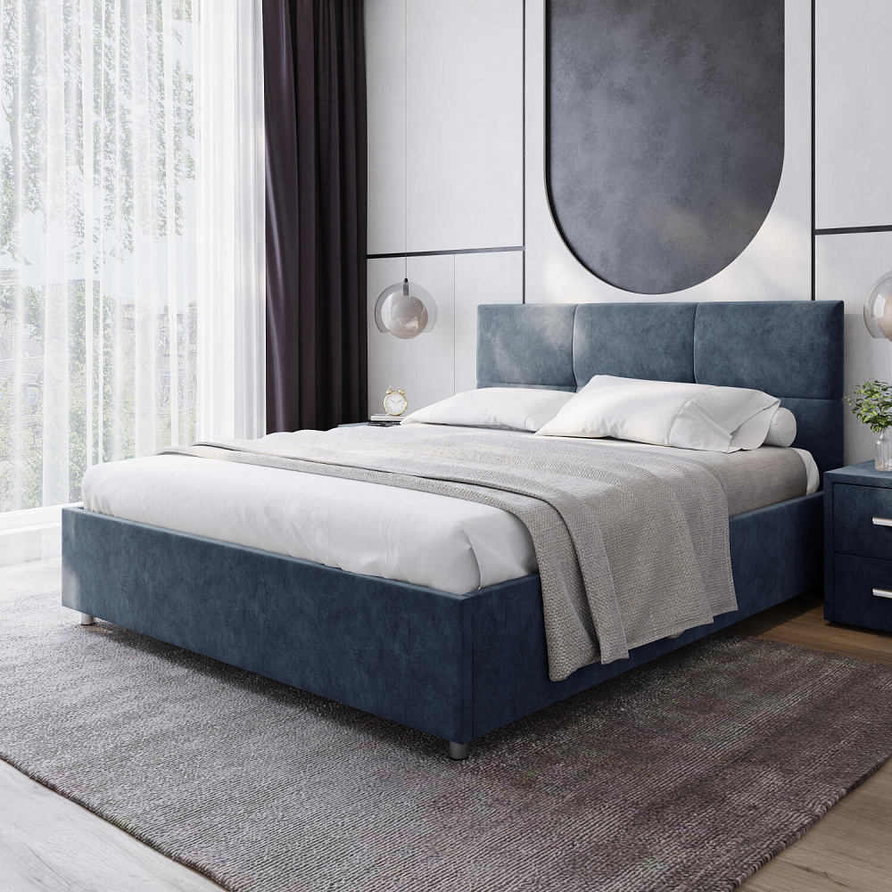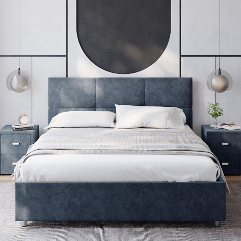 Кровать «Альба» — гармоничное сочетание стильного дизайна и комфорта. Мягкое изголовье с декором в виде прямоугольной строчки выглядит эффектно и создаёт ощущение уюта. Модель также поможет сэкономить пространство спальни благодаря вместительному бельевому коробу под решёткой.