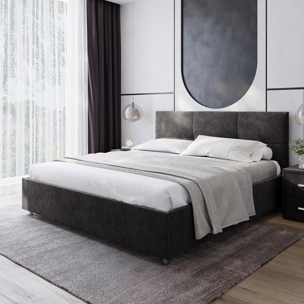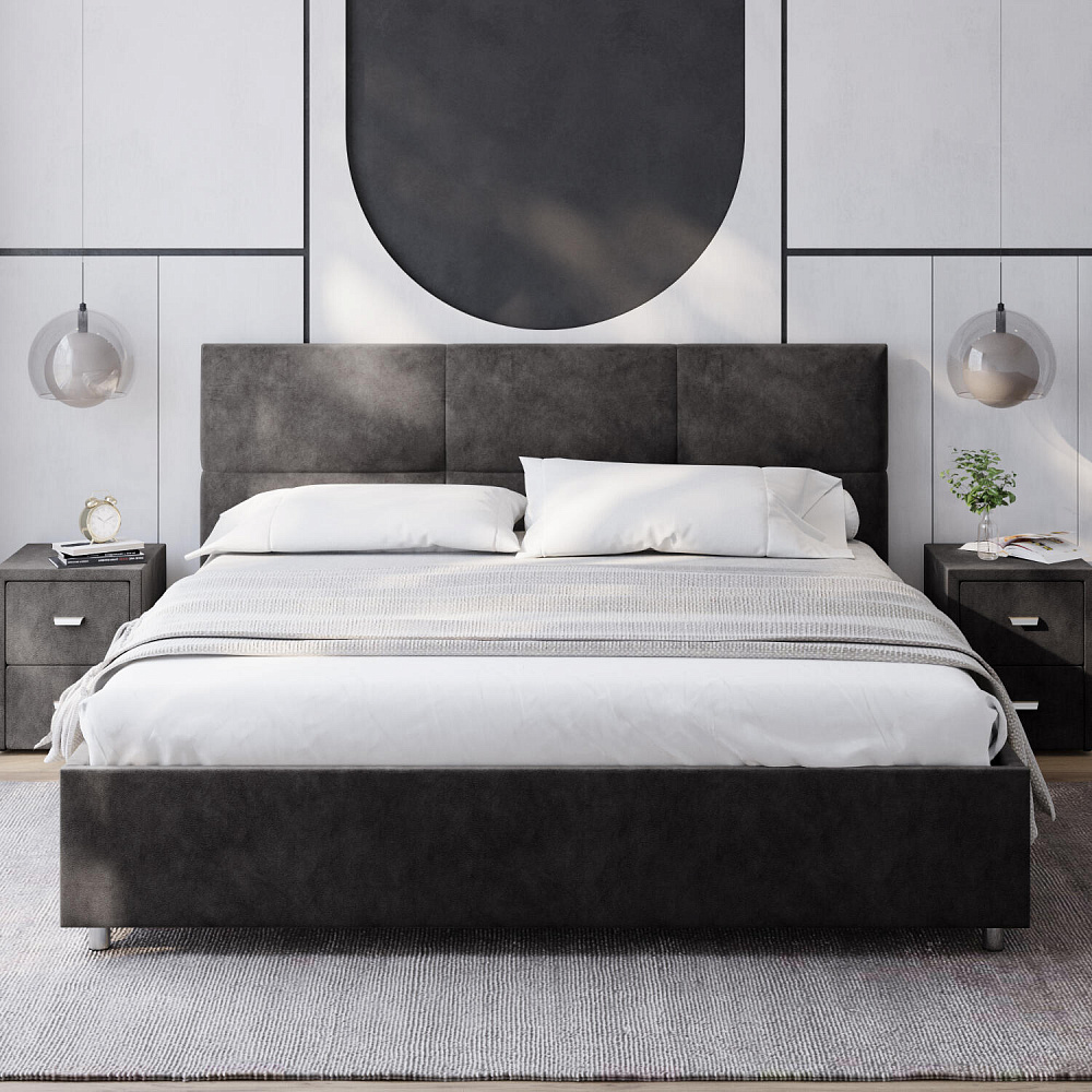 Кровать «Альба» — гармоничное сочетание стильного дизайна и комфорта. Мягкое изголовье с декором в виде прямоугольной строчки выглядит эффектно и создаёт ощущение уюта. Модель также поможет сэкономить пространство спальни благодаря вместительному бельевому коробу под решёткой.