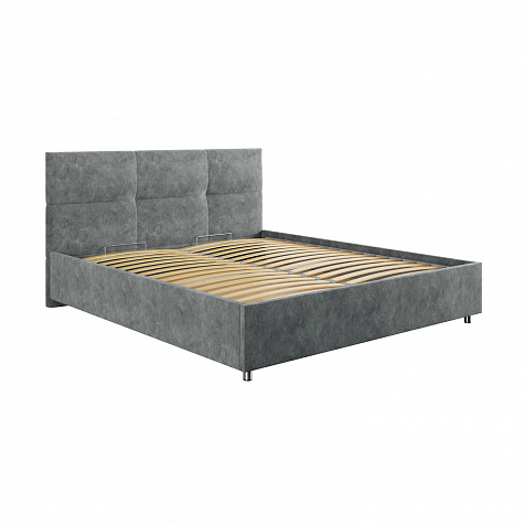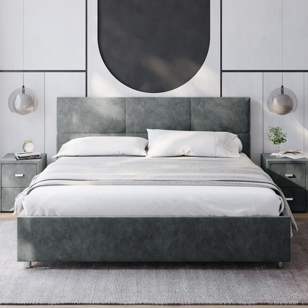 Кровать «Альба» — гармоничное сочетание стильного дизайна и комфорта. Мягкое изголовье с декором в виде прямоугольной строчки выглядит эффектно и создаёт ощущение уюта. Модель также поможет сэкономить пространство спальни благодаря вместительному бельевому коробу под решёткой.