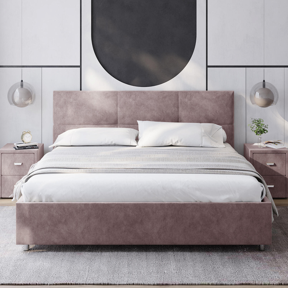 Кровать «Альба» — гармоничное сочетание стильного дизайна и комфорта. Мягкое изголовье с декором в виде прямоугольной строчки выглядит эффектно и создаёт ощущение уюта. Модель также поможет сэкономить пространство спальни благодаря вместительному бельевому коробу под решёткой.