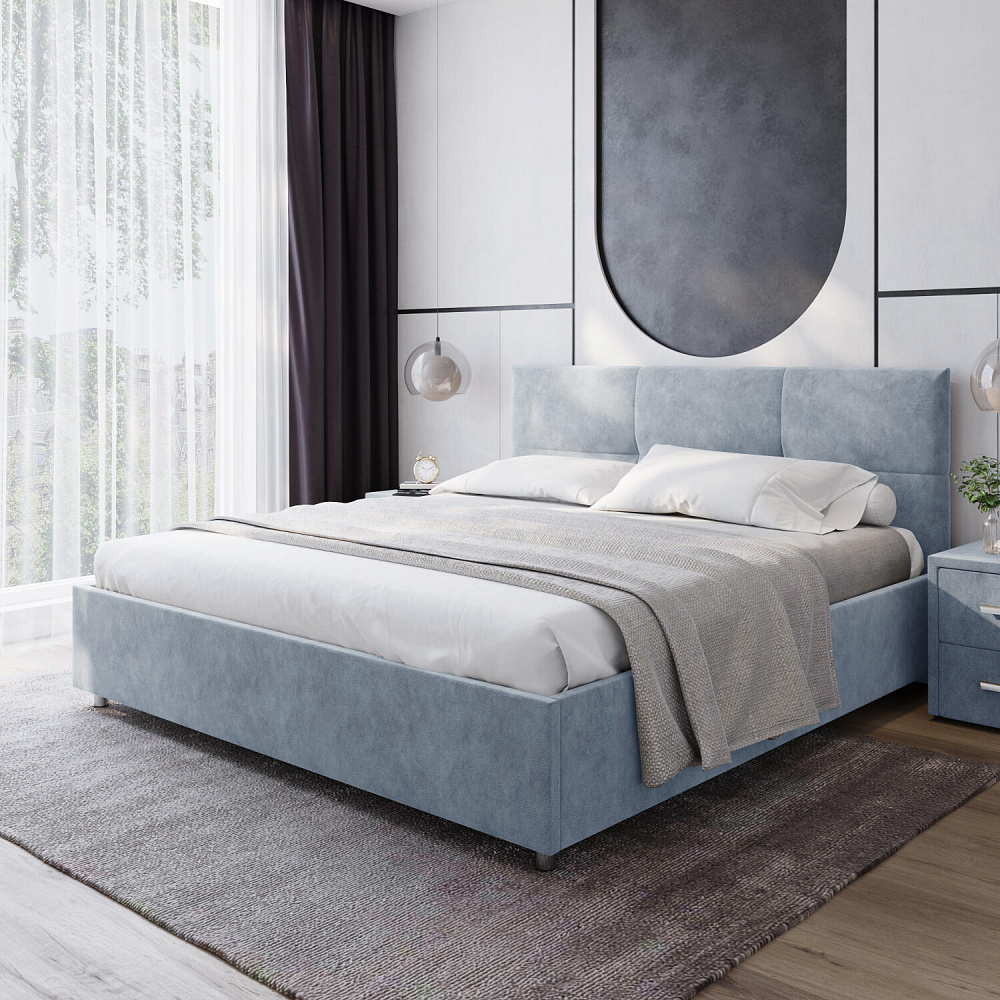 Кровать «Альба» — гармоничное сочетание стильного дизайна и комфорта. Мягкое изголовье с декором в виде прямоугольной строчки выглядит эффектно и создаёт ощущение уюта. Модель также поможет сэкономить пространство спальни благодаря вместительному бельевому коробу под решёткой.