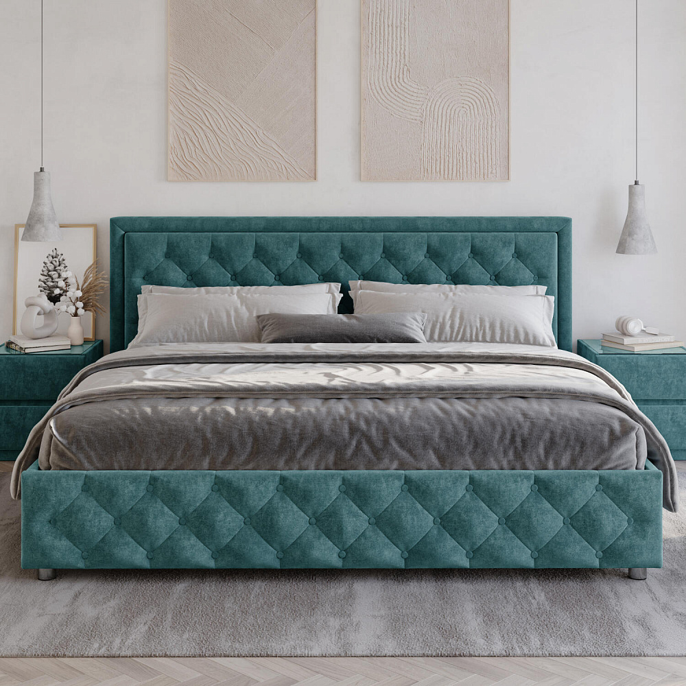 Мягкая кровать «Габриэла» с запоминающимся рельефным декором преобразит интерьер спальни. В модели гармонично сочетаются классический стиль и современные материалы. Помимо широкого спального места кровать оснащена бельевым ящиком, что поможет освободить пространство спальни для новых вещей.