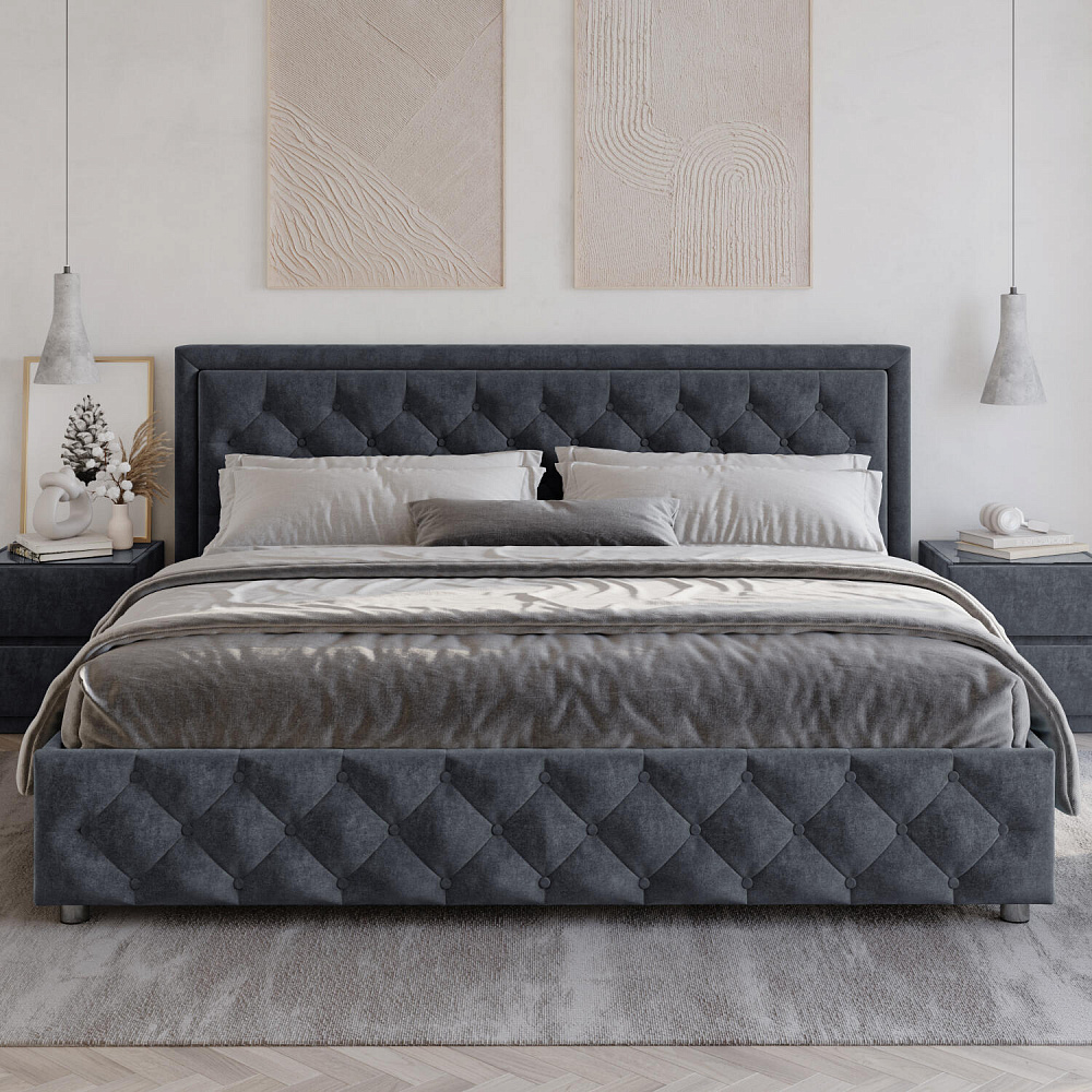 Мягкая кровать «Габриэла» с запоминающимся рельефным декором преобразит интерьер спальни. В модели гармонично сочетаются классический стиль и современные материалы. Помимо широкого спального места кровать оснащена бельевым ящиком, что поможет освободить пространство спальни для новых вещей.