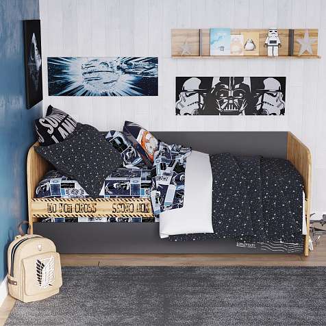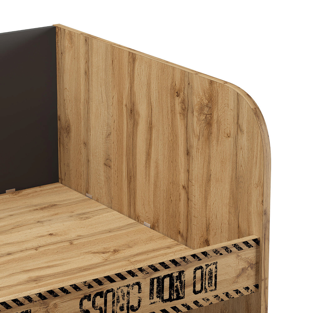 Односпальная кровать «Мистеро» займёт центральное место в интерьере детской. Идеальная комбинация дерева и темного цвета наполнит интерьер детской или молодёжной комнаты умиротворением и уютом. Продуманные размеры спального места при наличии удобного матраса обеспечат максимально спокойный и полезный отдых вашего ребёнка. При необходимости базовая функциональность кровати может быть расширена за счёт установки под основание дополнительных модулей.