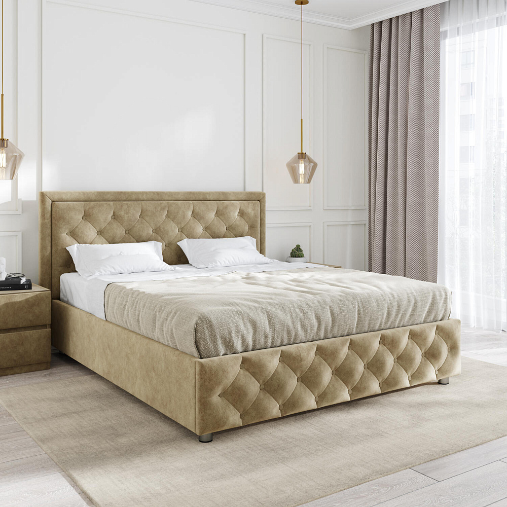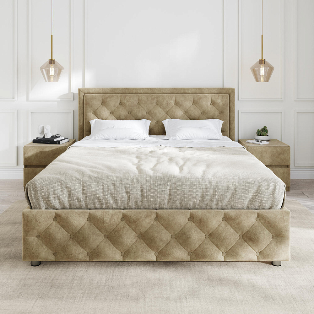Мягкая кровать «Габриэла» с запоминающимся рельефным декором преобразит интерьер спальни. В модели гармонично сочетаются классический стиль и современные материалы. Помимо широкого спального места кровать оснащена бельевым ящиком, что поможет освободить пространство спальни для новых вещей.