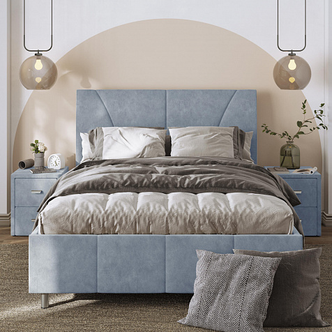 Мягкая кровать «Каролина» для тех, кому важен здоровый сон и эстетичный вид мебели. Дизайн отличается диагональными и прямыми строчками и слегка изогнутым изголовьем. Возвышение на ножках добавит в интерьер динамики и лёгкости. Кровать также поможет сэкономить пространство квартиры благодаря вместительному бельевому коробу под решёткой.