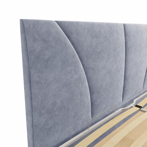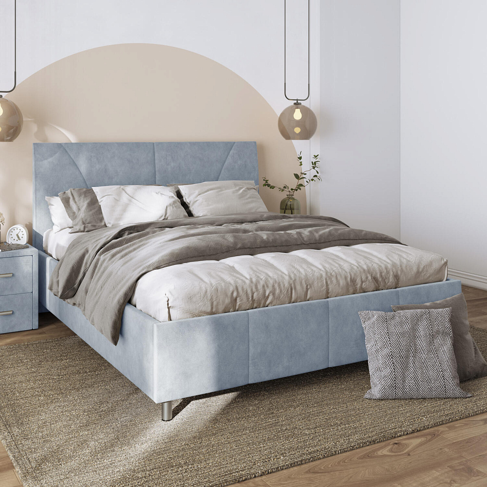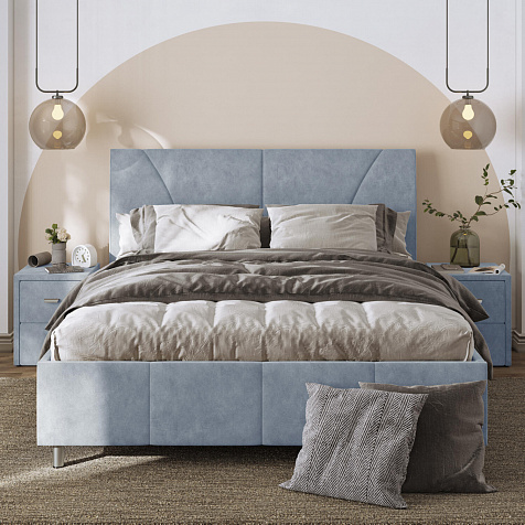 Мягкая кровать «Каролина» для тех, кому важен здоровый сон и эстетичный вид мебели. Дизайн отличается диагональными и прямыми строчками и слегка изогнутым изголовьем. Возвышение на ножках добавит в интерьер динамики и лёгкости. Кровать также поможет сэкономить пространство квартиры благодаря вместительному бельевому коробу под решёткой.