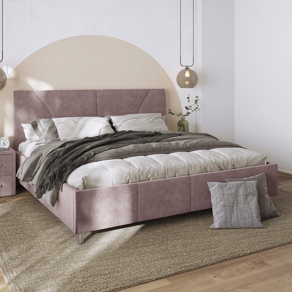 Мягкая кровать «Каролина» для тех, кому важен здоровый сон и эстетичный вид мебели. Дизайн отличается диагональными и прямыми строчками и слегка изогнутым изголовьем. Возвышение на ножках добавит в интерьер динамики и лёгкости. Кровать также поможет сэкономить пространство квартиры благодаря вместительному бельевому коробу под решёткой.