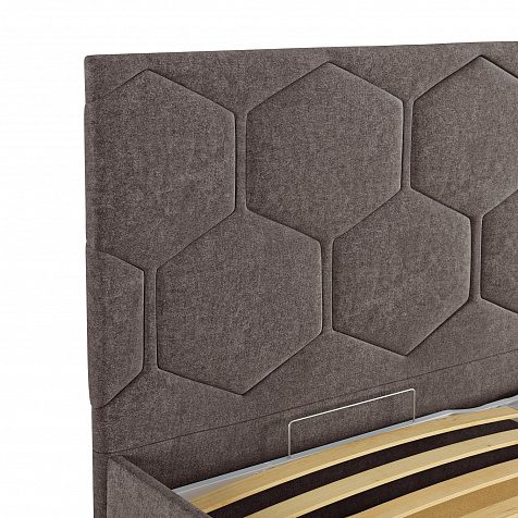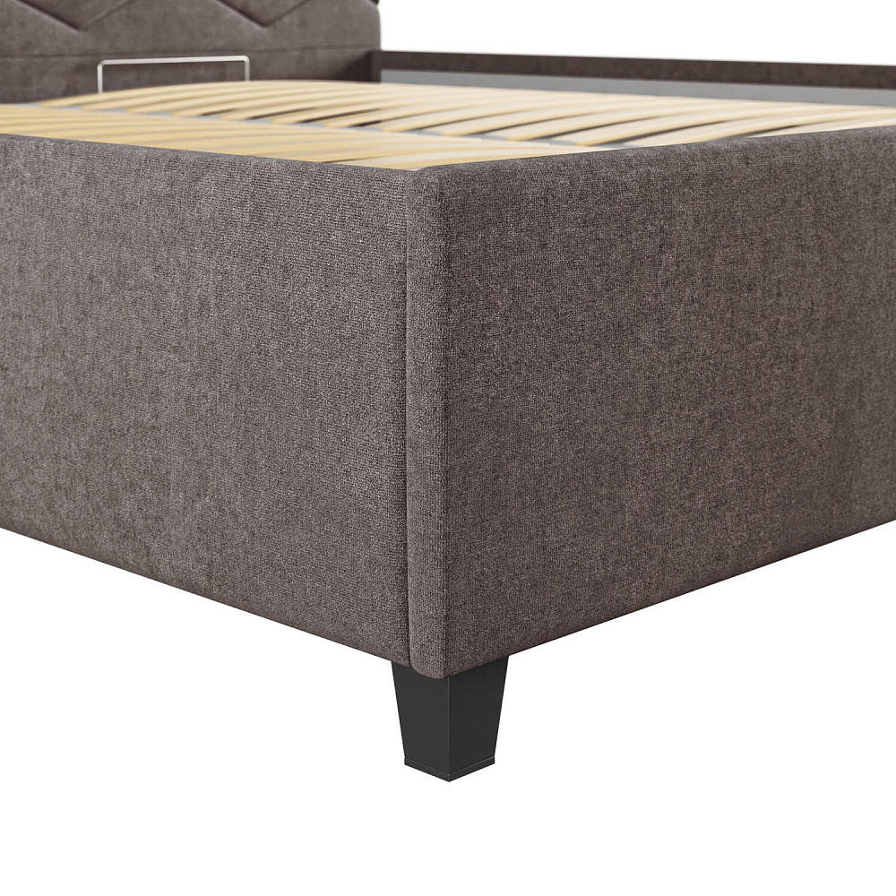 Подъёмный механизм поднимает и опускает основание кровати вместе с матрасом, открывая доступ к пространству для хранения вещей.