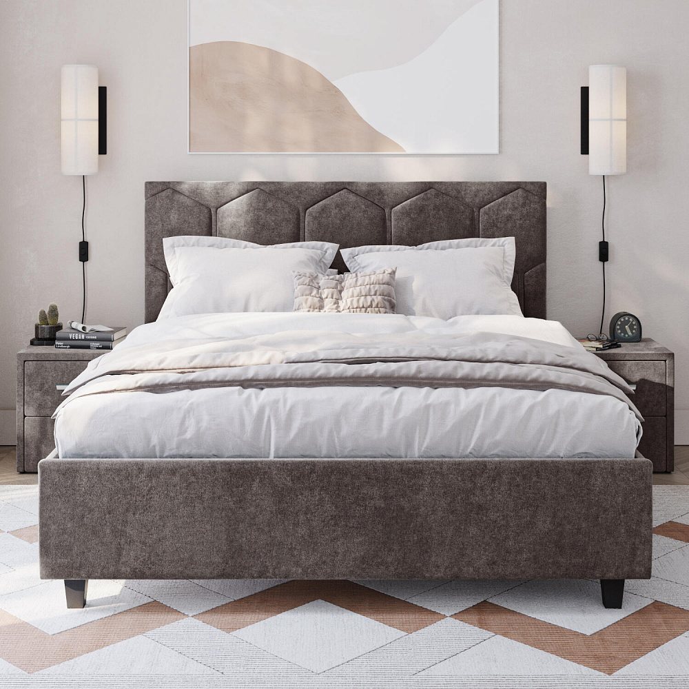 Обивка из велюра. Визуально схожесть с замшевой текстурой смотрится элегантно. Ткань приятная на ощупь, устойчива к истиранию и механическим повреждениям.