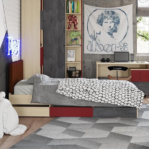Кровать «Джелато» подойдет как для мальчиков, так и для девочек. Светлый корпус с древесной текстурой располагает к отдыху. Динамику интерьеру придает ненавязчивый акцент фасадов. Мягкое изголовье гармонирует с цветом ящиков и удобно в качестве опоры для головы. Вместе с правильно подобранным матрасом модель станет комфортной зоной для качественного и крепкого сна.