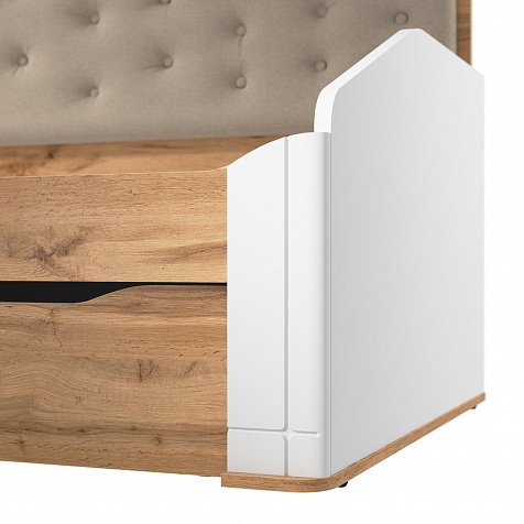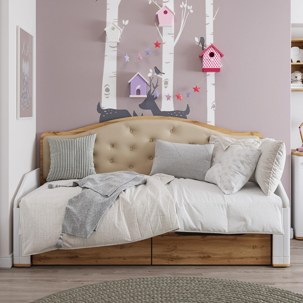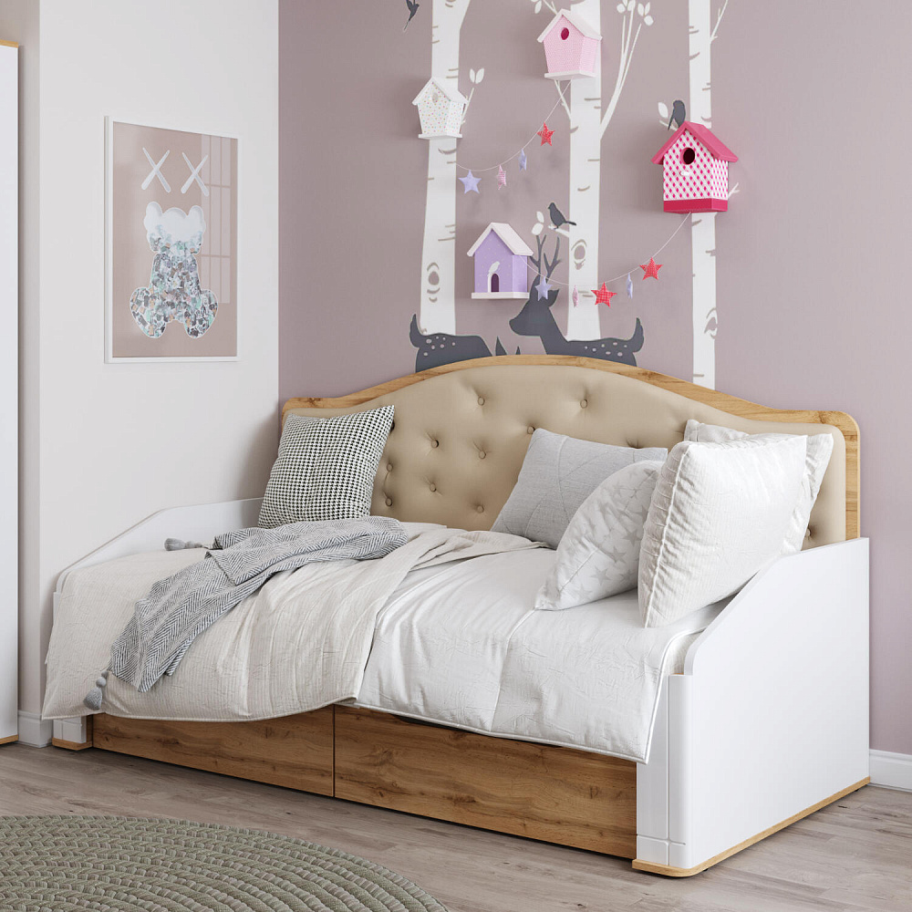 Кровать с мягкой спинкой «Кассия» подарит ребёнку прекрасные моменты отдыха и самые сладкие сны. Продуманные размеры спального места при наличии удобного матраса обеспечат максимальный комфорт и удобство, а выдвижные ящики помогут компактно разместить постельное бельё.