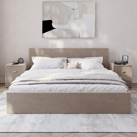 Кровать «Элис» выполнена в мягкой обивке из практичного и износостойкого велюра. Прямая спинка украшена декоративной стежкой, добавляющей стиля и динамики в интерьер. Особо прочный бельевой ящик позволит хранить в кровати даже самые тяжелые предметы и вещи. Надёжное основание и анатомическая решётка на подъёмных газлифтах обеспечат оптимальный уровень комфорта во время сна.