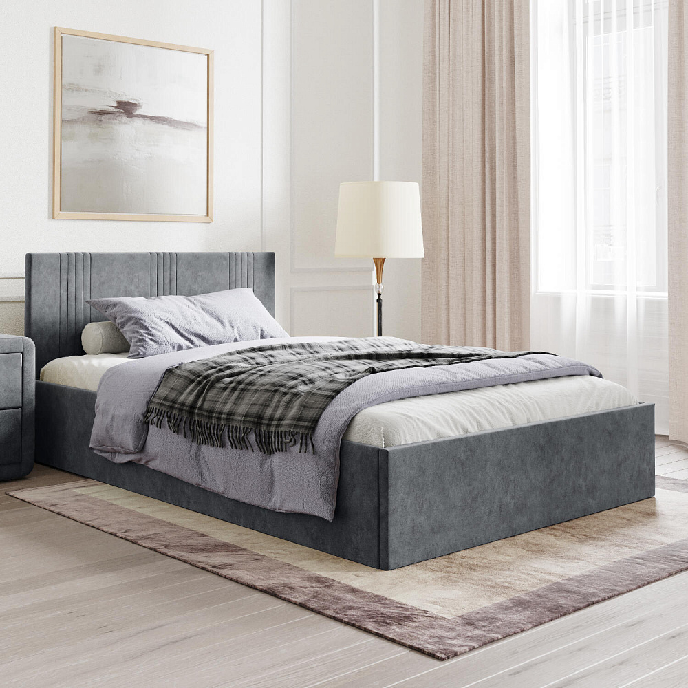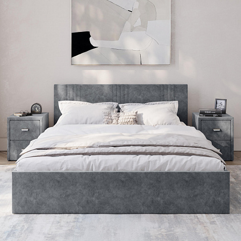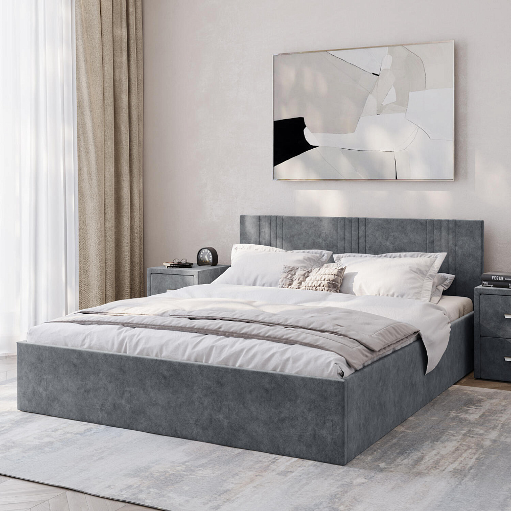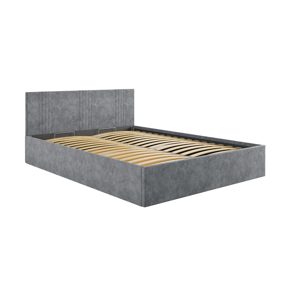 Кровать «Элис» выполнена в мягкой обивке из практичного и износостойкого велюра. Прямая спинка украшена декоративной стежкой, добавляющей стиля и динамики в интерьер. Особо прочный бельевой ящик позволит хранить в кровати даже самые тяжелые предметы и вещи. Надёжное основание и анатомическая решётка на подъёмных газлифтах обеспечат оптимальный уровень комфорта во время сна.