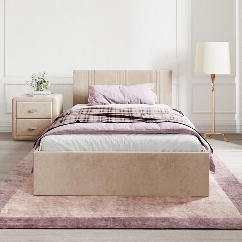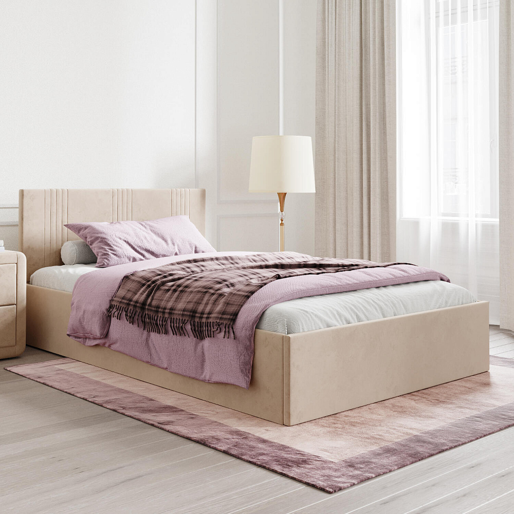 Кровать «Элис» выполнена в мягкой обивке из практичного и износостойкого велюра. Прямая спинка украшена декоративной стежкой, добавляющей стиля и динамики в интерьер. Особо прочный бельевой ящик позволит хранить в кровати даже самые тяжелые предметы и вещи. Надёжное основание и анатомическая решётка на подъёмных газлифтах обеспечат оптимальный уровень комфорта во время сна.