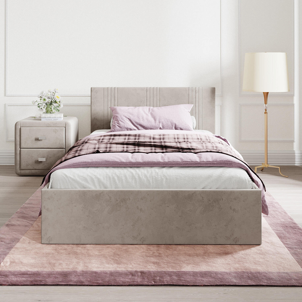 Кровать «Элис» выполнена в мягкой обивке из практичного и износостойкого велюра. Прямая спинка украшена декоративной стежкой, добавляющей стиля и динамики в интерьер. Особо прочный бельевой ящик позволит хранить в кровати даже самые тяжелые предметы и вещи. Надёжное основание и анатомическая решётка на подъёмных газлифтах обеспечат оптимальный уровень комфорта во время сна.