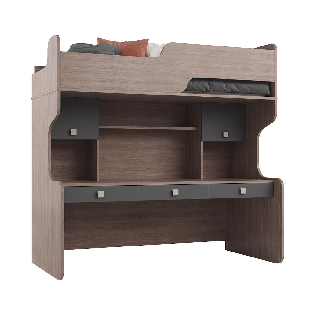 Кровать-чердак «Тиана» с рабочим столом и удобной системой хранения учебных принадлежностей понравится как детям, так и их родителям. Функциональный модуль значительно освободит место в комнате для игр и активных занятий.