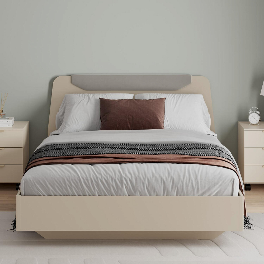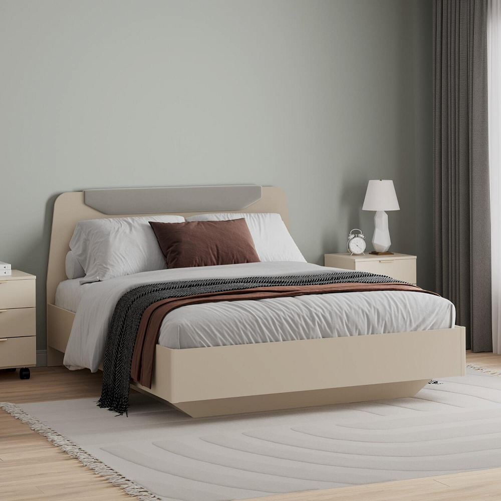 Кровать «Люксор» смотрится целостно и лаконично в пастельном цвете сатин. Изголовье украшено мягкой накладкой в обивке из серого велюра. Основание необычной формы создает эффект легкости и парения в воздухе. Надежное основание и правильно подобранный матрас обеспечит оптимальный уровень комфорта во время отдыха.
