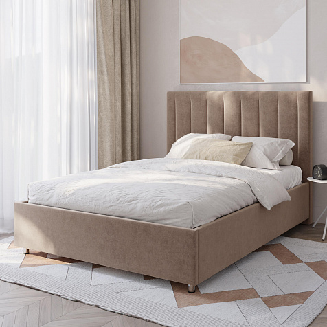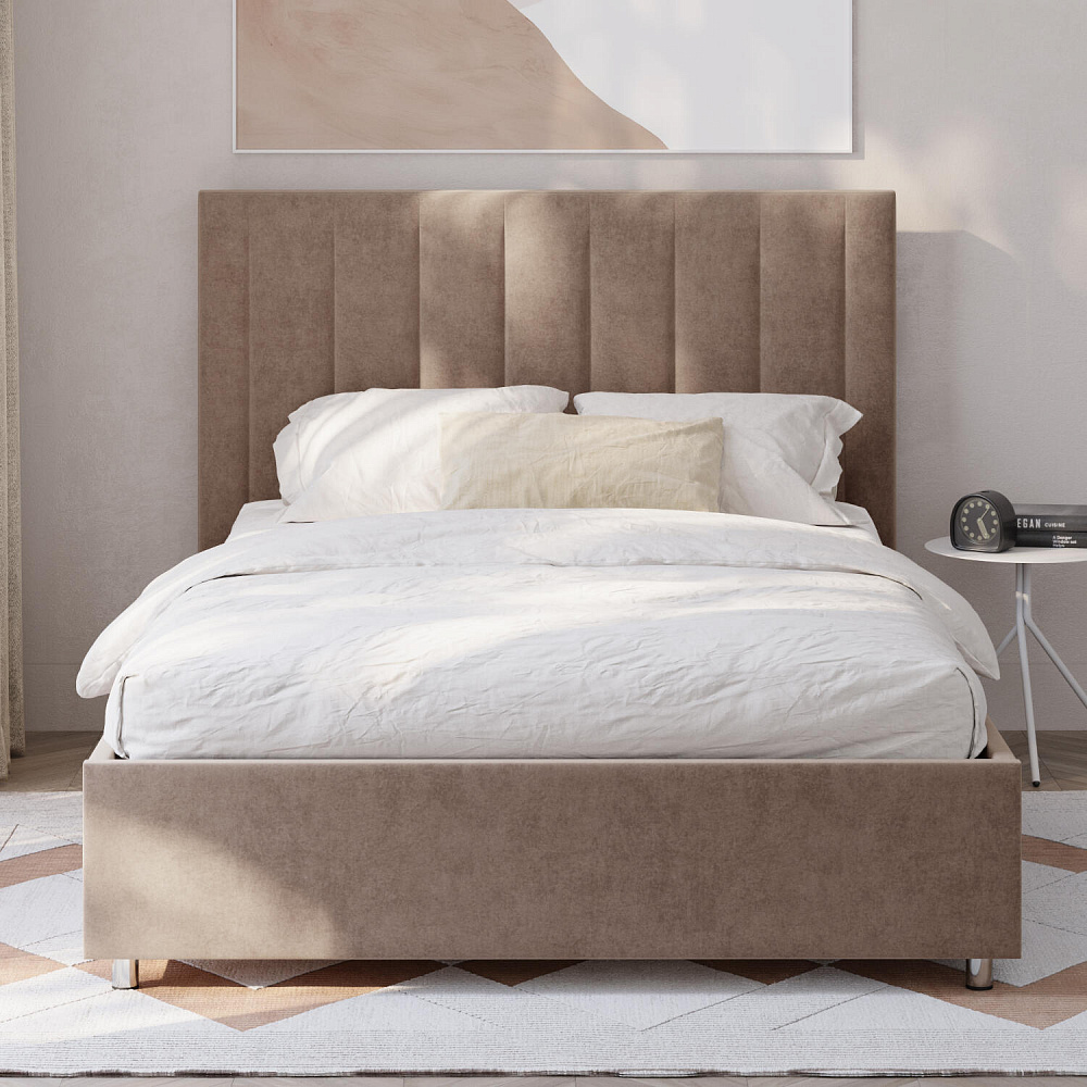 Мягкая кровать «Альфа» будет смотреться в интерьере спальни стильно и лаконично. Высокое изголовье модели украшено вертикальными строчками. Ортопедическое основание и правильно подобранный матрас обеспечат комфортный отдых и здоровый сон.
