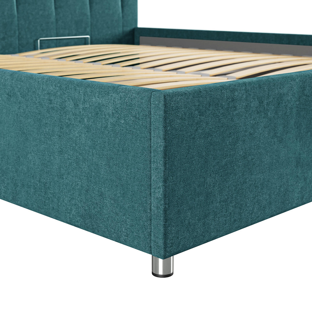 Подъёмный механизм поднимает и опускает основание кровати вместе с матрасом, открывая доступ к пространству для хранения вещей.