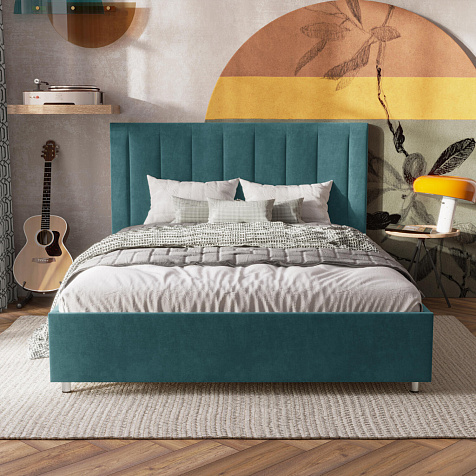 Мягкая кровать «Альфа» будет смотреться в интерьере спальни стильно и лаконично. Высокое изголовье модели украшено вертикальными строчками. Ортопедическое основание и правильно подобранный матрас обеспечат комфортный отдых и здоровый сон.