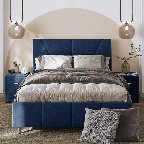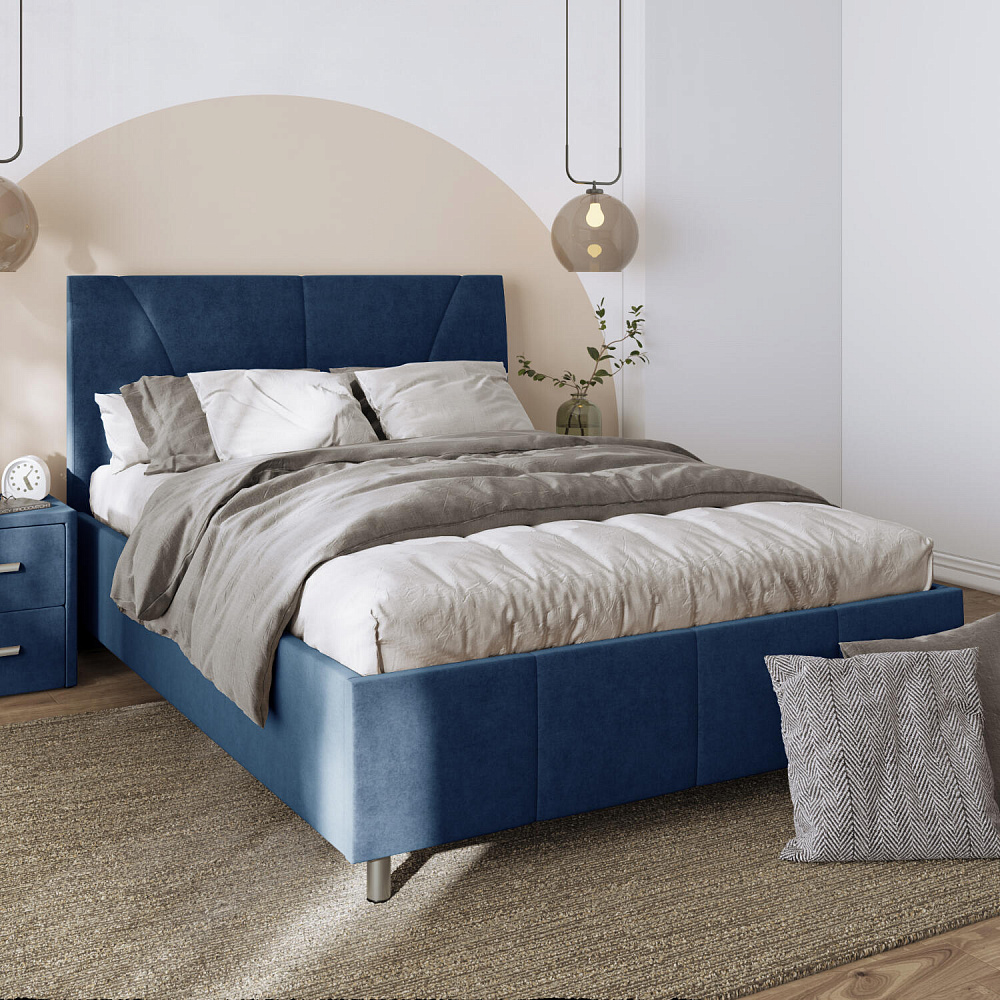 Мягкая кровать «Каролина» для тех, кому важен здоровый сон и эстетичный вид мебели. Дизайн отличается диагональными и прямыми строчками и слегка изогнутым изголовьем. Возвышение на ножках добавит в интерьер динамики и лёгкости. Кровать также поможет сэкономить пространство квартиры благодаря вместительному бельевому коробу под решёткой.
