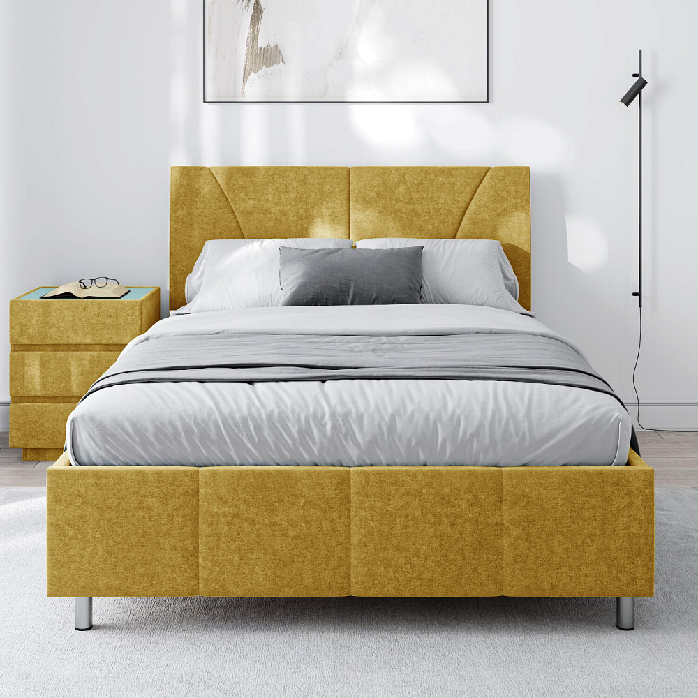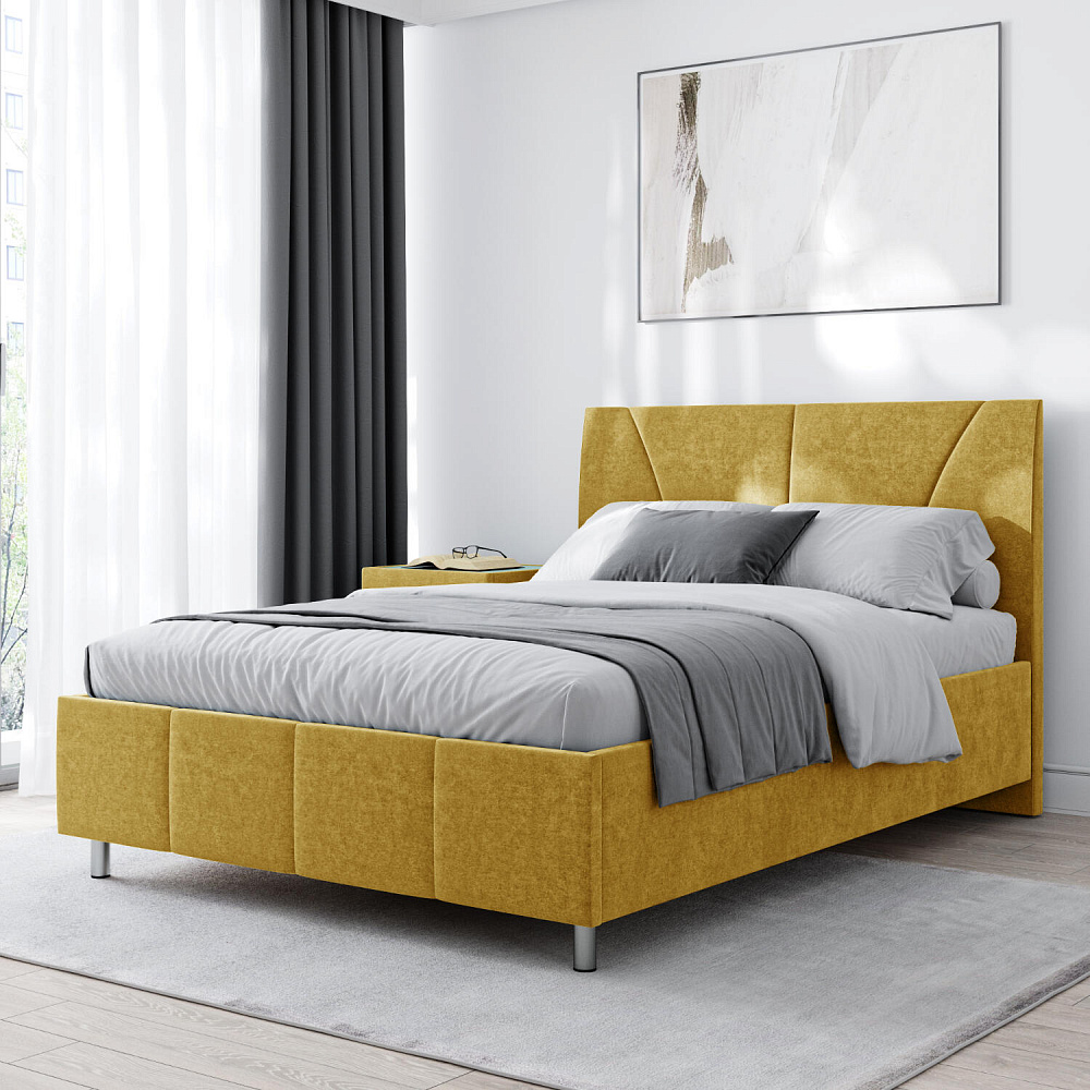 Мягкая кровать «Каролина» для тех, кому важен здоровый сон и эстетичный вид мебели. Дизайн отличается диагональными и прямыми строчками и слегка изогнутым изголовьем. Возвышение на ножках добавит в интерьер динамики и лёгкости. Кровать также поможет сэкономить пространство квартиры благодаря вместительному бельевому коробу под решёткой.