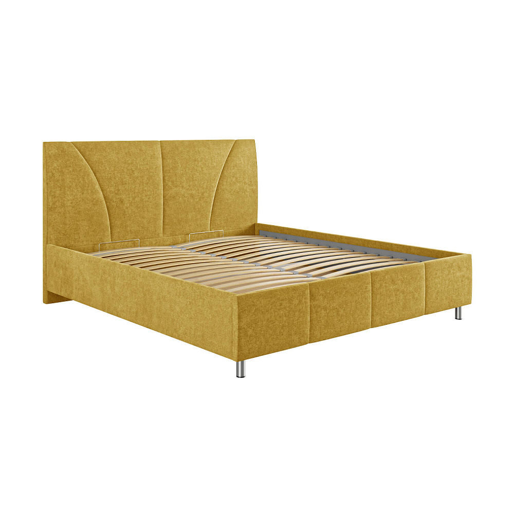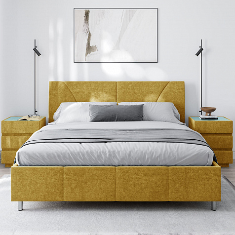Мягкая кровать «Каролина» для тех, кому важен здоровый сон и эстетичный вид мебели. Дизайн отличается диагональными и прямыми строчками и слегка изогнутым изголовьем. Возвышение на ножках добавит в интерьер динамики и лёгкости. Кровать также поможет сэкономить пространство квартиры благодаря вместительному бельевому коробу под решёткой.