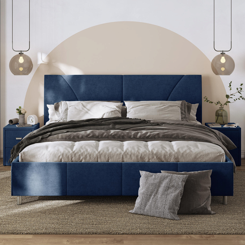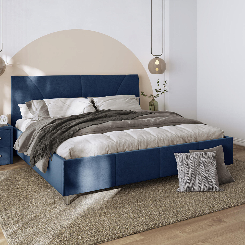 Мягкая кровать «Каролина» для тех, кому важен здоровый сон и эстетичный вид мебели. Дизайн отличается диагональными и прямыми строчками и слегка изогнутым изголовьем. Возвышение на ножках добавит в интерьер динамики и лёгкости. Кровать также поможет сэкономить пространство квартиры благодаря вместительному бельевому коробу под решёткой.