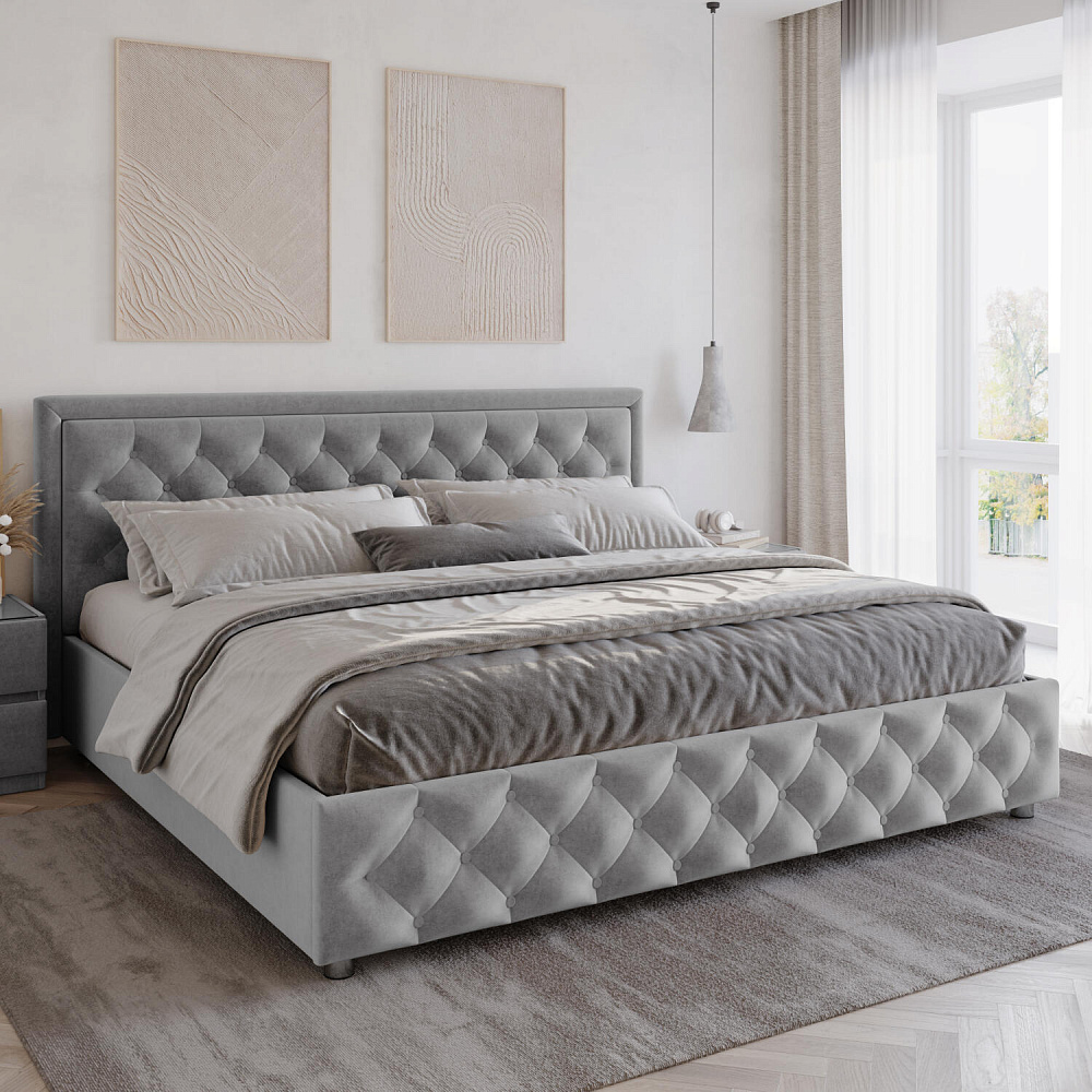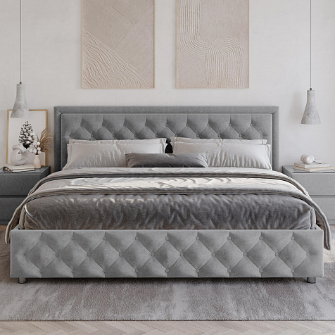 Мягкая кровать «Габриэла» с запоминающимся рельефным декором преобразит интерьер спальни. В модели гармонично сочетаются классический стиль и современные материалы. Помимо широкого спального места кровать оснащена бельевым ящиком, что поможет освободить пространство спальни для новых вещей.