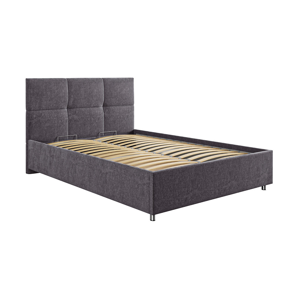 Кровать «Альба» — гармоничное сочетание стильного дизайна и комфорта. Мягкое изголовье с декором в виде прямоугольной строчки выглядит эффектно и создаёт ощущение уюта. Модель также поможет сэкономить пространство спальни благодаря вместительному бельевому коробу под решёткой.