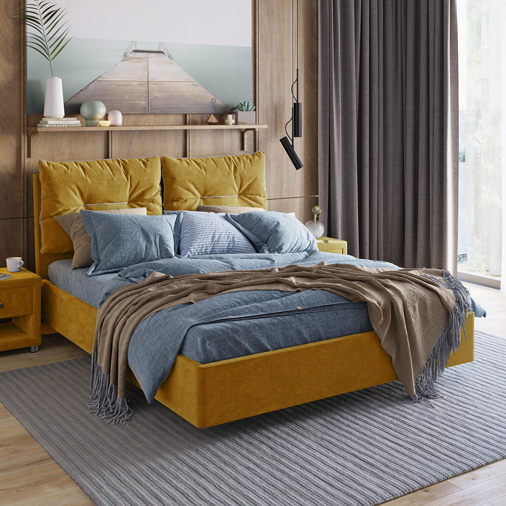 Кровать «Санремо» со съёмными подушками на изголовье — уютнейший вариант оформления спальни. Контрастный кант и внутренний шов придают подушкам дополнительный объем. При необходимости подушки легко снимаются, ведь они крепятся к изголовью на липучках. «Санремо» подарит невероятный комфорт и уют своим владельцам.